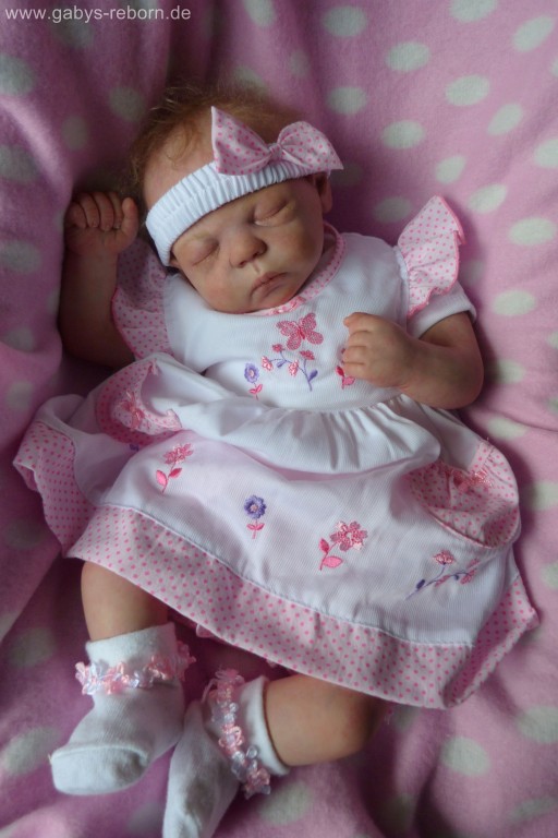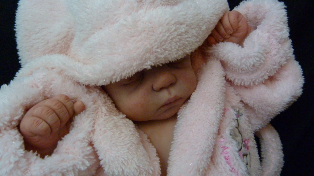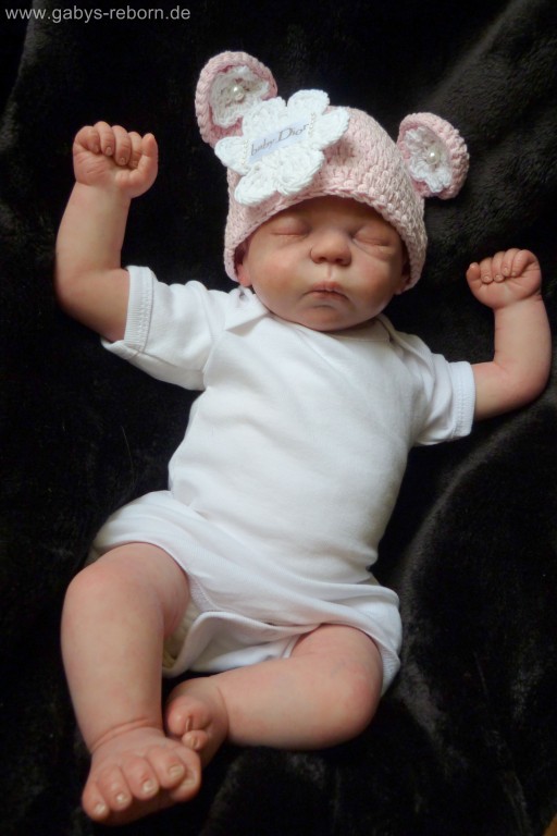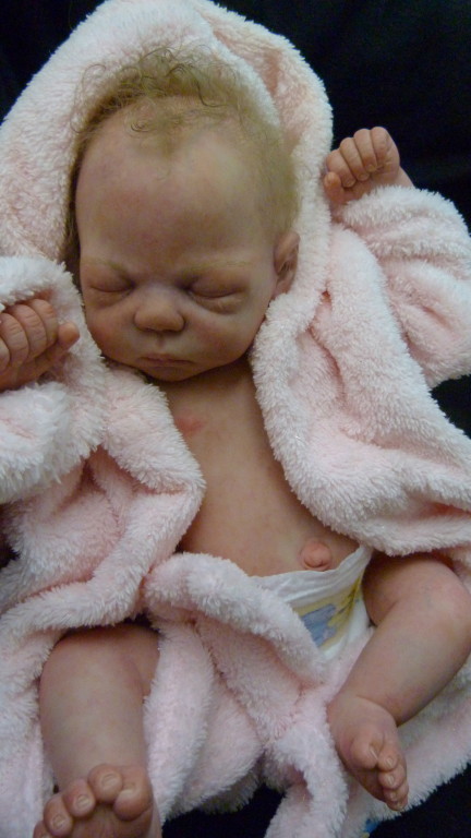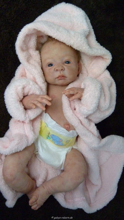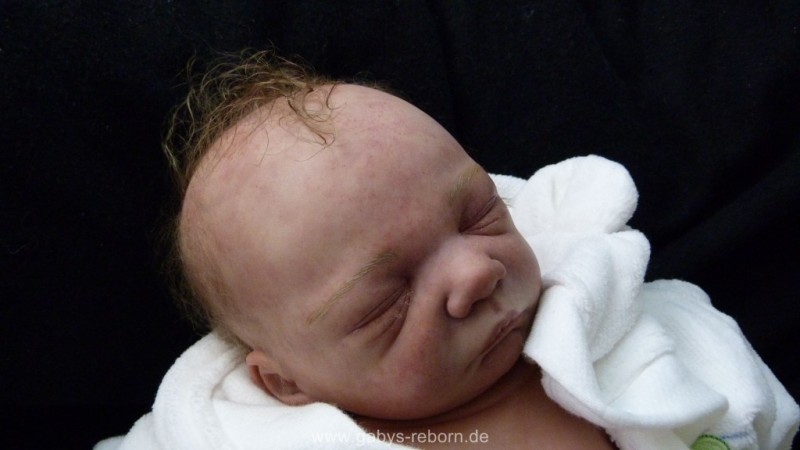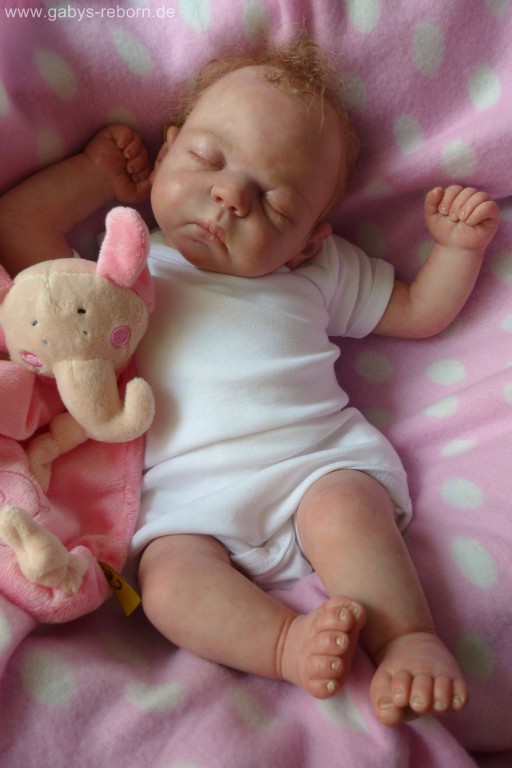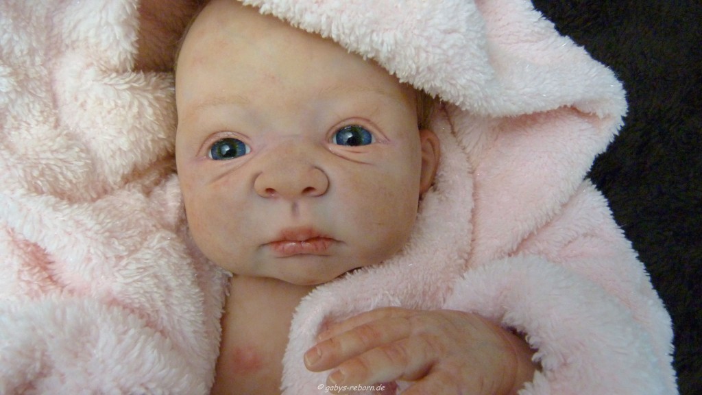 Die Babys bekommen gerootete Augenwimpern, gezeichnete bzw. gerootete Augenbrauen (microrooting), geöffnete Nasen & Ohren sowie mit Modelliermasse Nasen bzw. Ohrengänge modelliert, Ich färbe mit Genesis Heat Paints in vielen Schichten und anschließender Versiegelung.