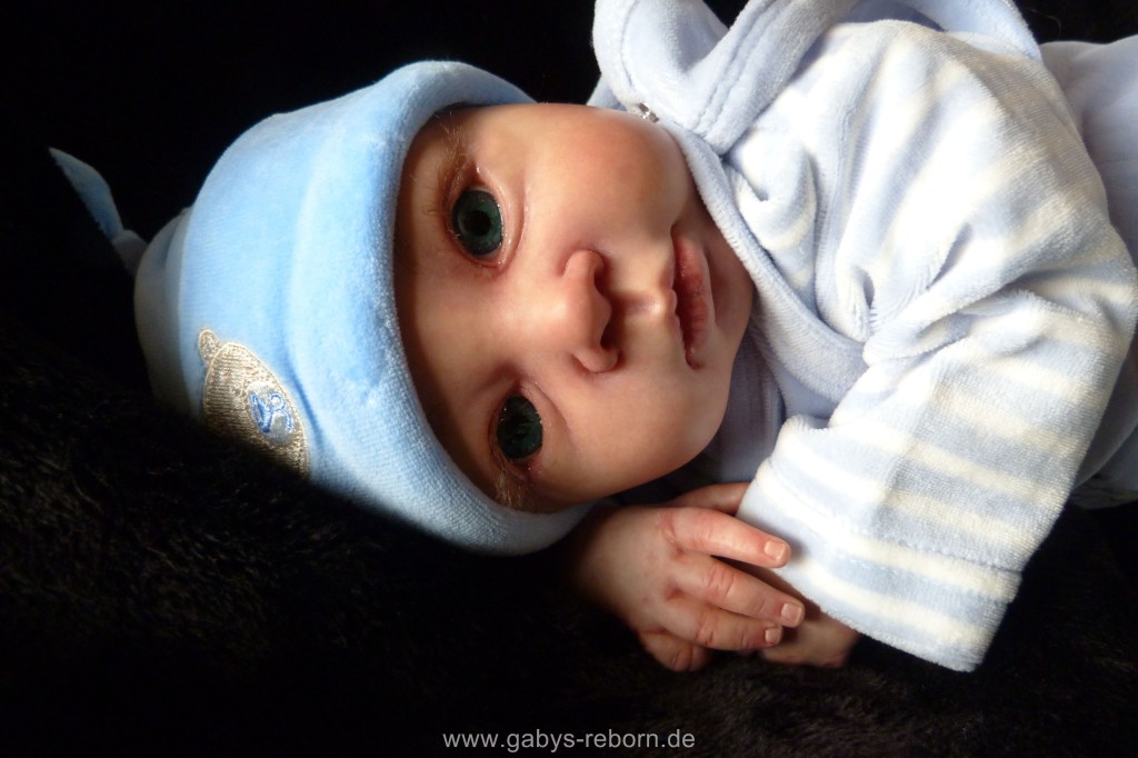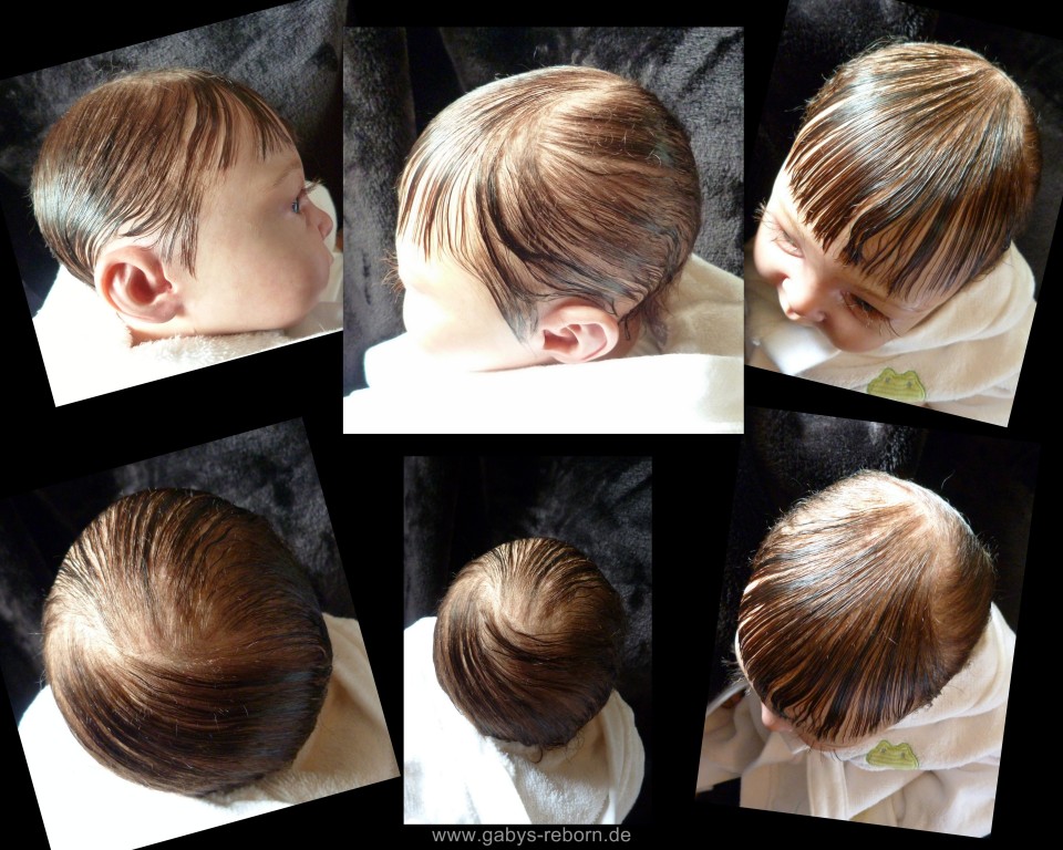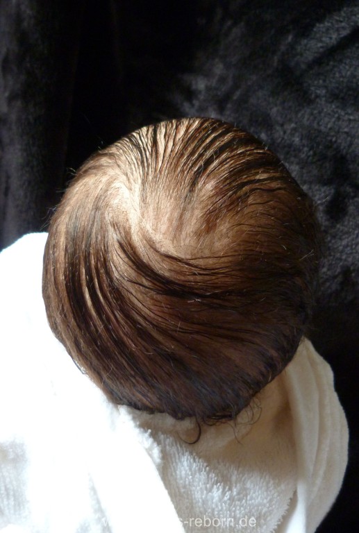Die Babys bekommen gerootete Augenwimpern, gezeichnete bzw. gerootete Augenbrauen (microrooting), geöffnete Nasen & Ohren sowie mit Modelliermasse Nasen bzw. Ohrengänge modelliert, Ich färbe mit Genesis Heat Paints in vielen Schichten und anschließender Versiegelung.