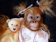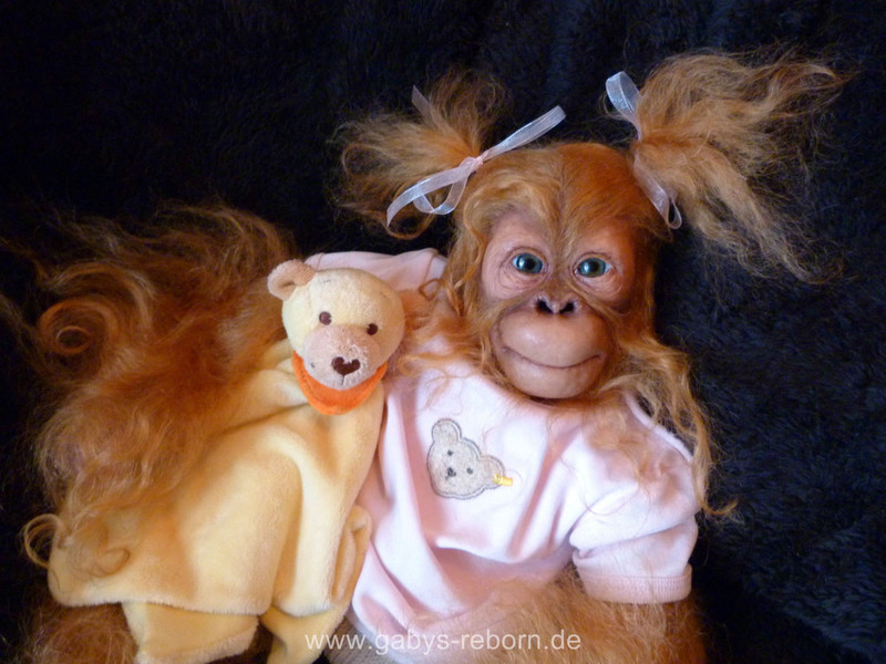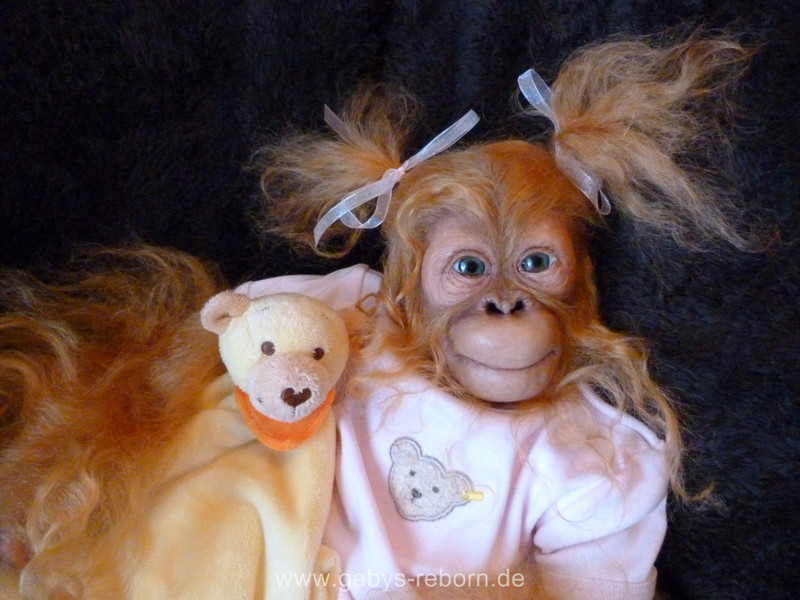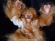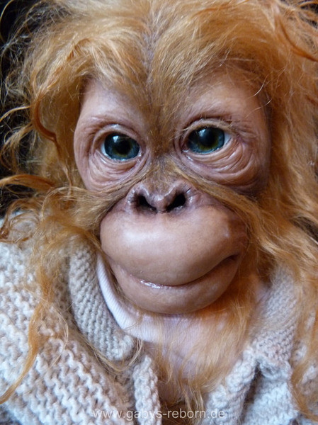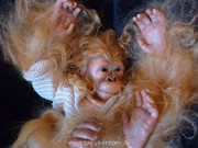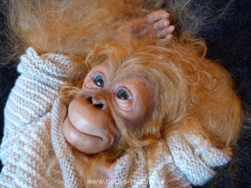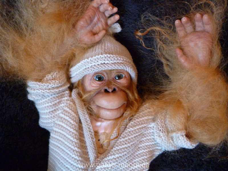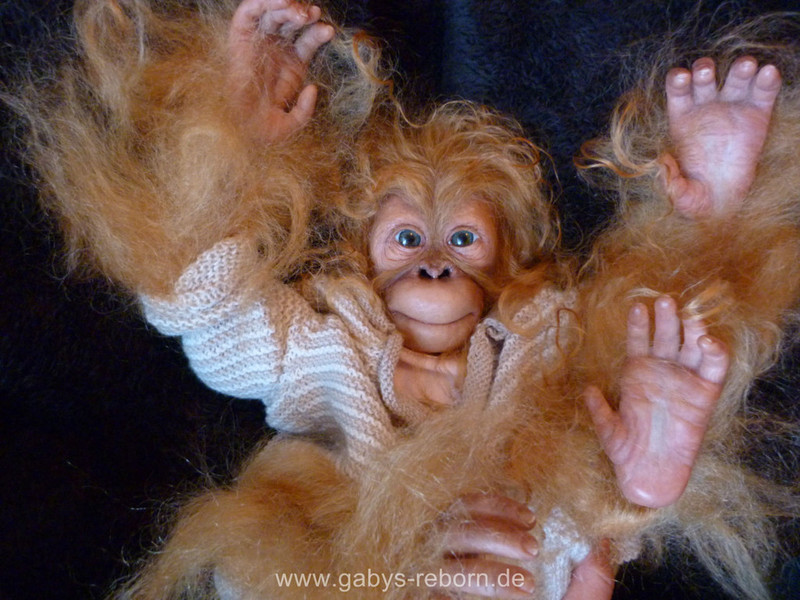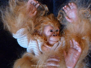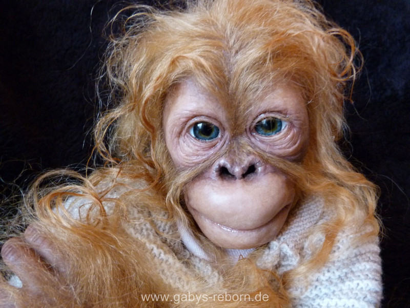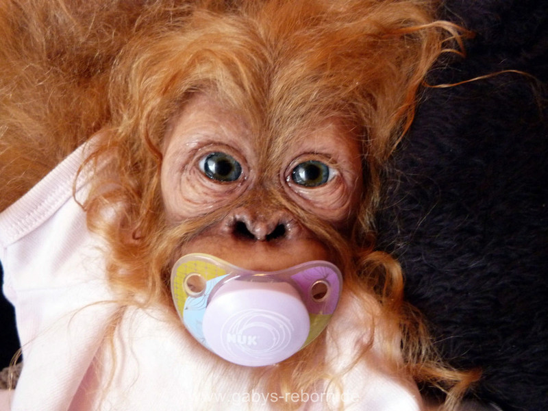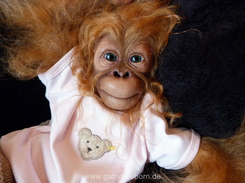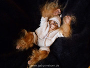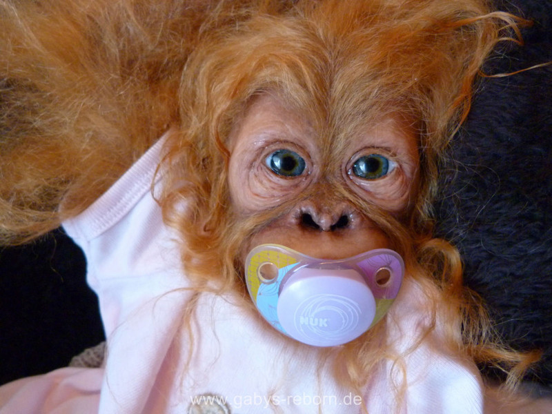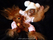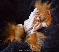 Die Babys bekommen gerootete Augenwimpern, gezeichnete bzw. gerootete Augenbrauen (microrooting), geöffnete Nasen & Ohren sowie mit Modelliermasse Nasen bzw. Ohrengänge modelliert, Ich färbe mit Genesis Heat Paints in vielen Schichten und anschließender Versiegelung.