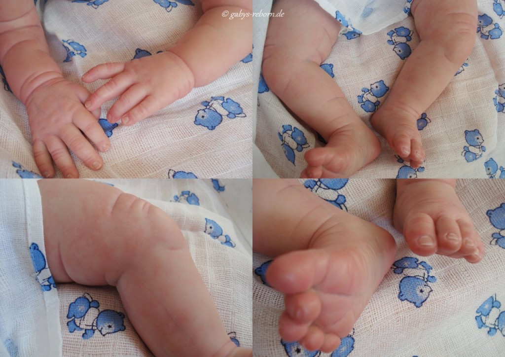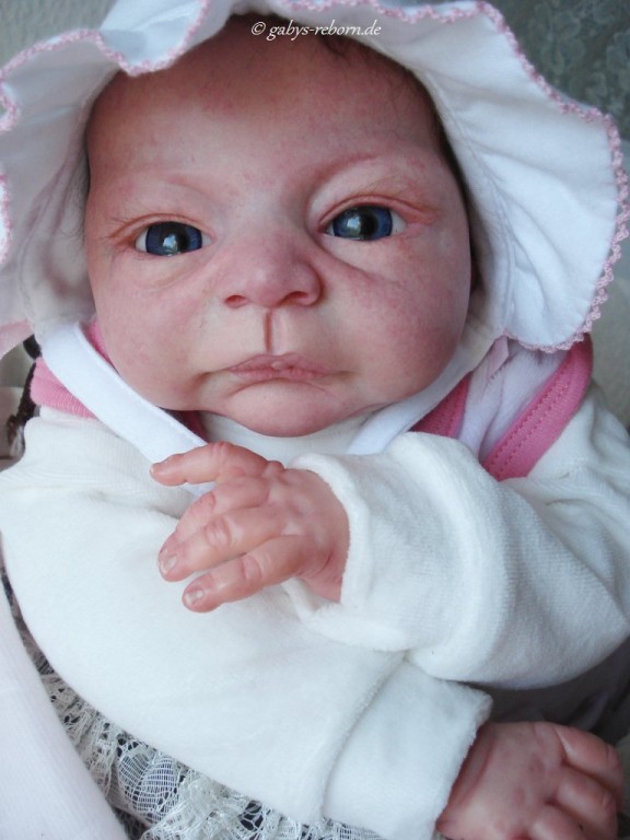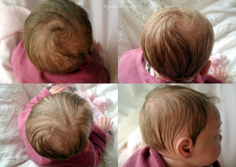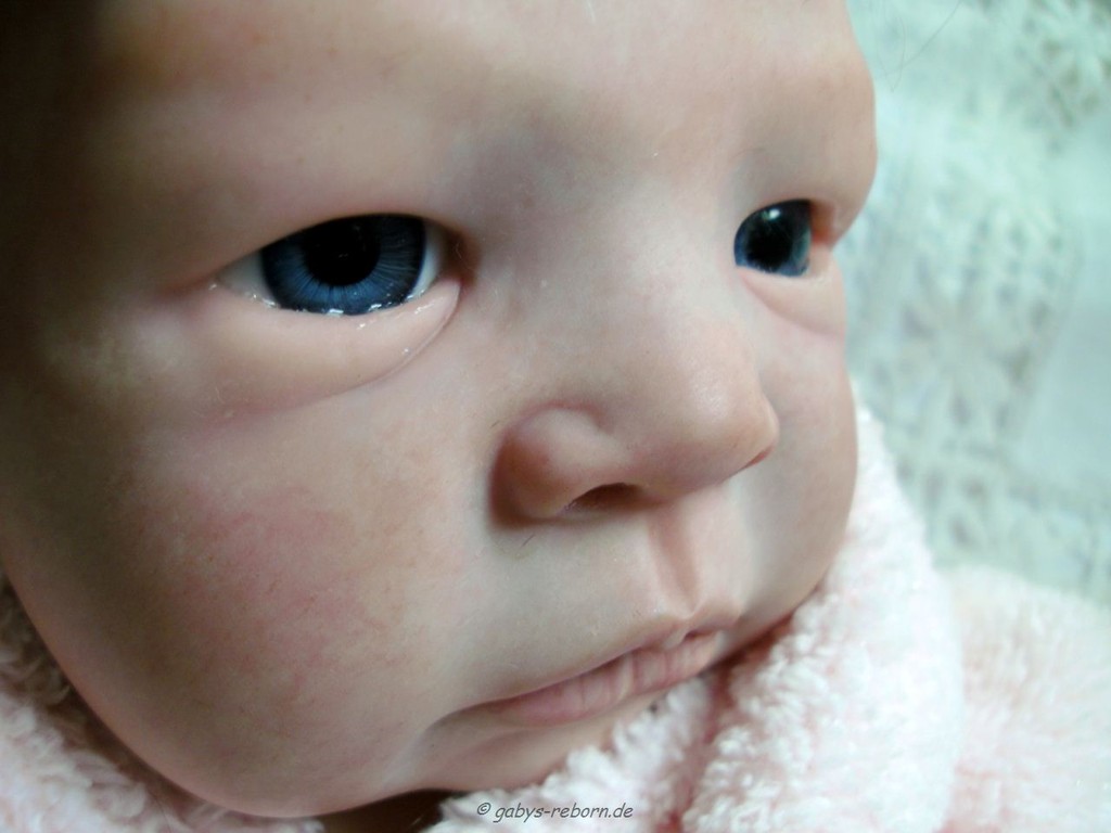 Die Babys bekommen gerootete Augenwimpern, gezeichnete bzw. gerootete Augenbrauen (microrooting), geöffnete Nasen & Ohren sowie mit Modelliermasse Nasen bzw. Ohrengänge modelliert, Ich färbe mit Genesis Heat Paints in vielen Schichten und anschließender Versiegelung.