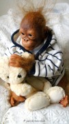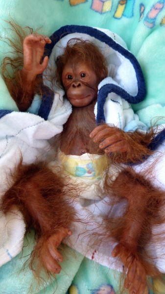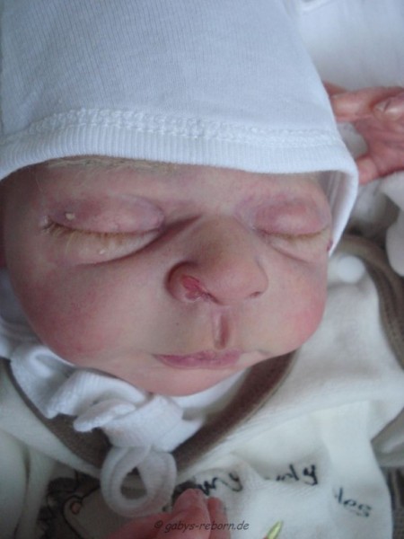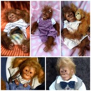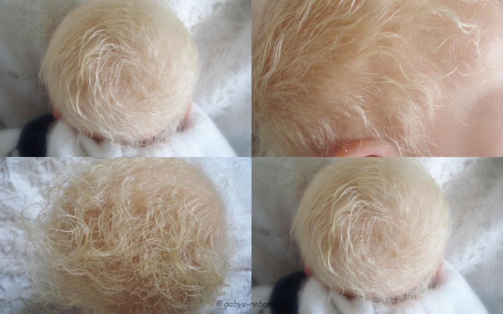 Die Babys bekommen gerootete Augenwimpern, gezeichnete bzw. gerootete Augenbrauen (microrooting), geöffnete Nasen & Ohren sowie mit Modelliermasse Nasen bzw. Ohrengänge modelliert, Ich färbe mit Genesis Heat Paints in vielen Schichten und anschließender Versiegelung.