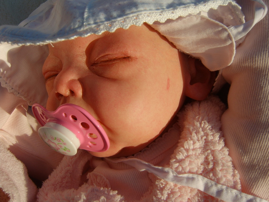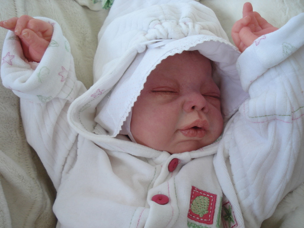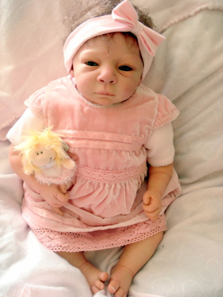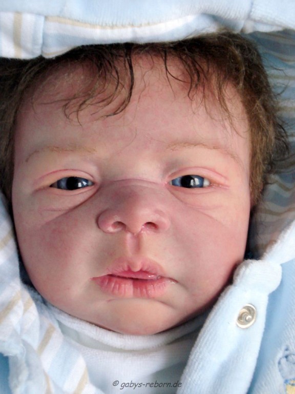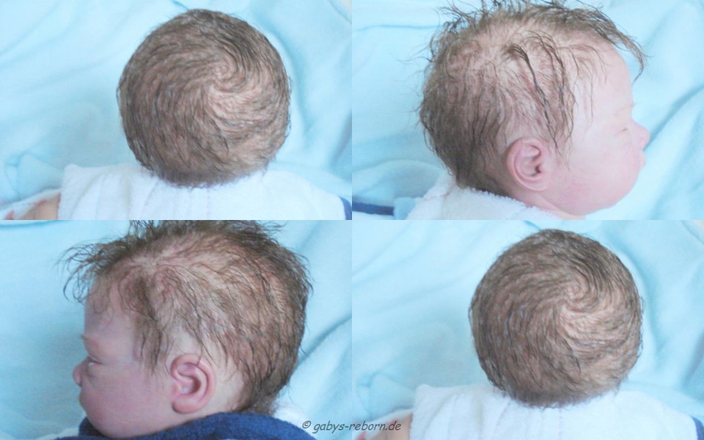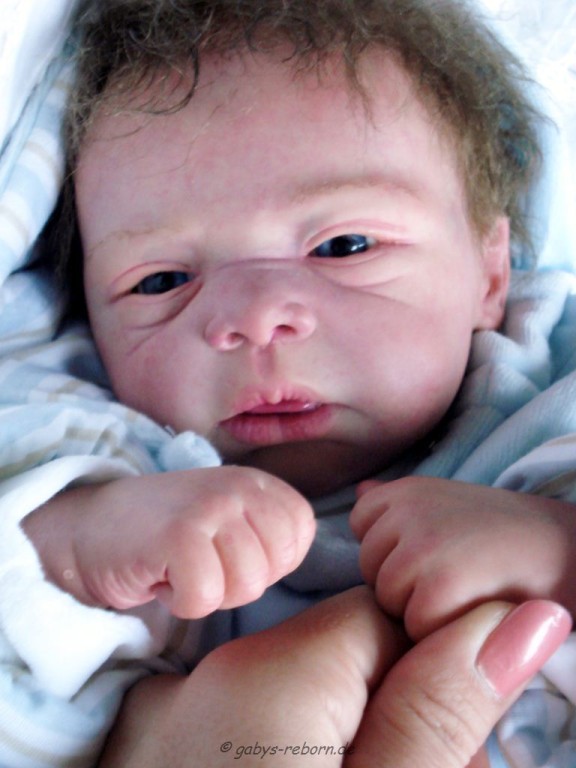 Die Babys bekommen gerootete Augenwimpern, gezeichnete bzw. gerootete Augenbrauen (microrooting), geöffnete Nasen & Ohren sowie mit Modelliermasse Nasen bzw. Ohrengänge modelliert, Ich färbe mit Genesis Heat Paints in vielen Schichten und anschließender Versiegelung.
