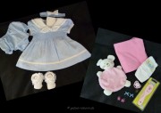 Haarpflege, Kamm/Bürste, Kuscheldecke, Kuscheltier, Windel, Kleidchen mit passendem Höschen und Stirnband (aus England), Spitzen-Söckchen, 3 paar Magnet Haarspangen, 1 Magnet Schnuller, Pflegeanleitung, Geburtsurkunde mit Bildern (eingeschweißt) (Geburtsdatum sowie der Name sind selbstverständlich frei wählbar) Sonderwünsche sind machbar.